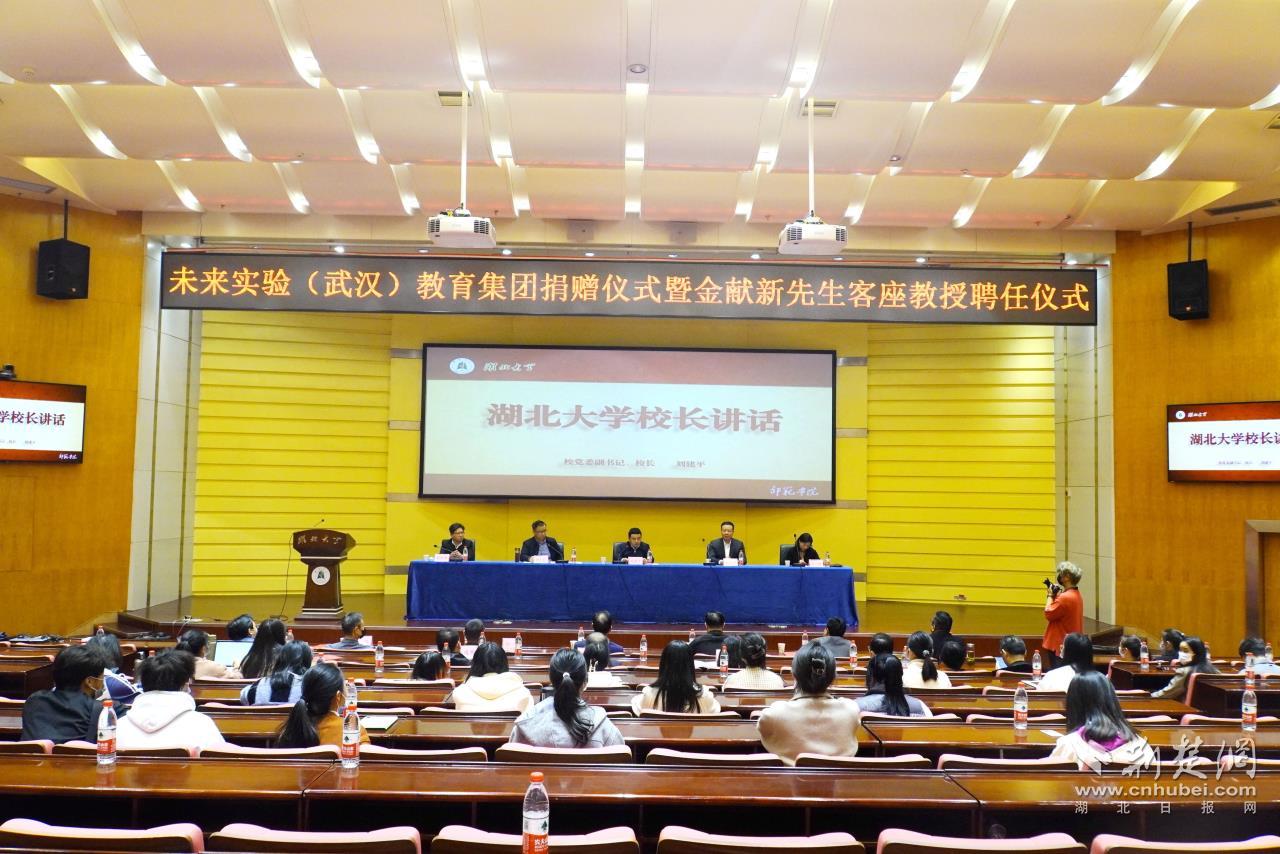 荆楚网(湖北日报网)讯(记者许文秀 通讯员冯琛怡、程晓佳)11月16日下午,未来实验(武汉)教育集团向必赢76net线路官网捐款200万,支持师范生培养和师范教育改革。必赢76net线路官网聘请未来实验(武汉)教育集团董事长金献新为客座教授。校党委副书记、校长刘建平出席聘任仪式,校党委常委章天金主持仪式。