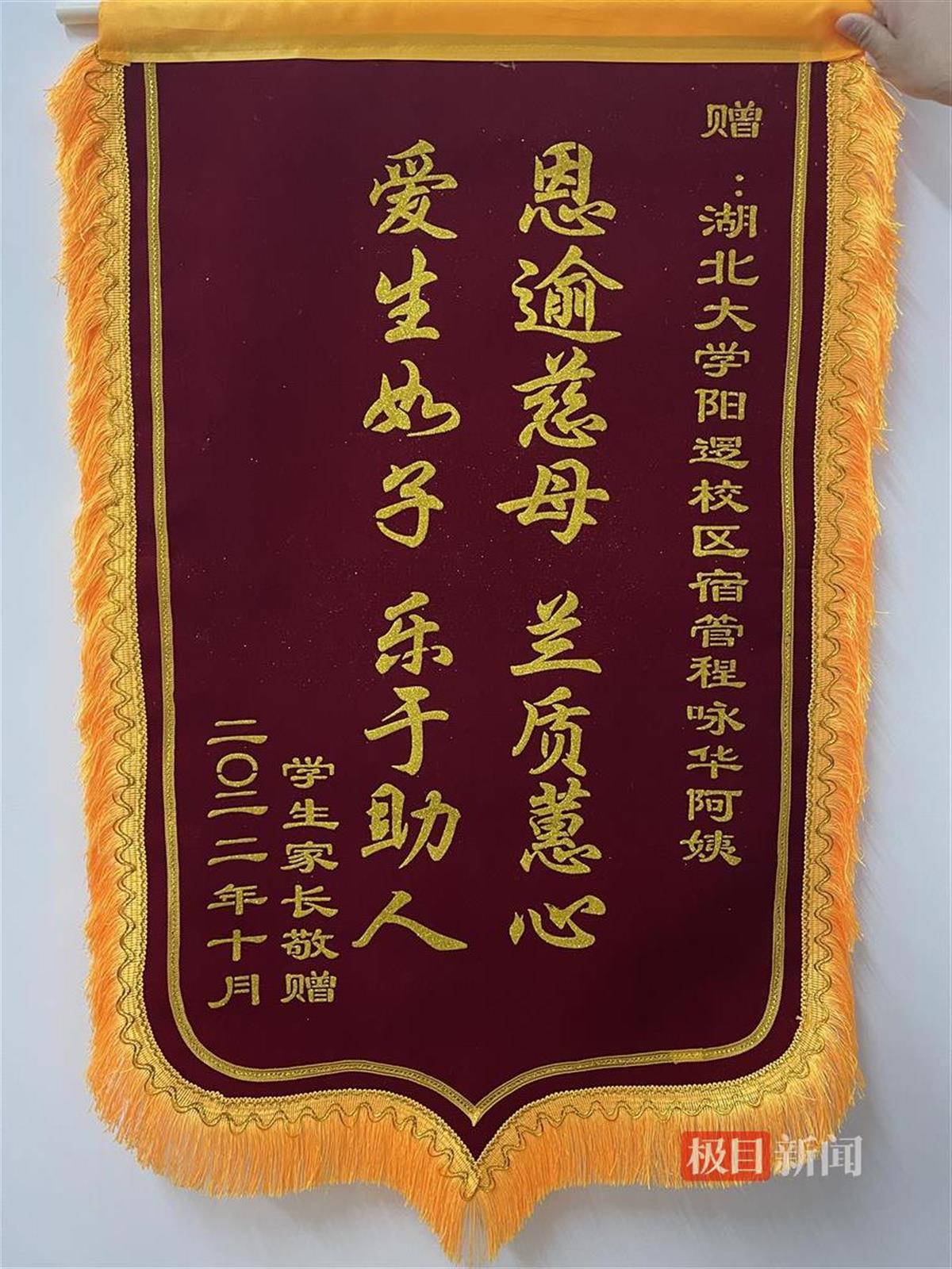 “思逾慈母,兰质蕙心;爱生如子,乐于助人。”近日,必赢76net线路官网阳逻校区学生公寓1栋的值班室里多了一面锦旗,锦旗上是2022级微电子专业学生刘骐源为宿管阿姨程咏华写的诗。