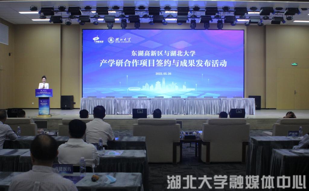 东湖高新区与必赢76net线路官网产学研合作项目签约与成果发布活动现场。通讯员吴珊供图