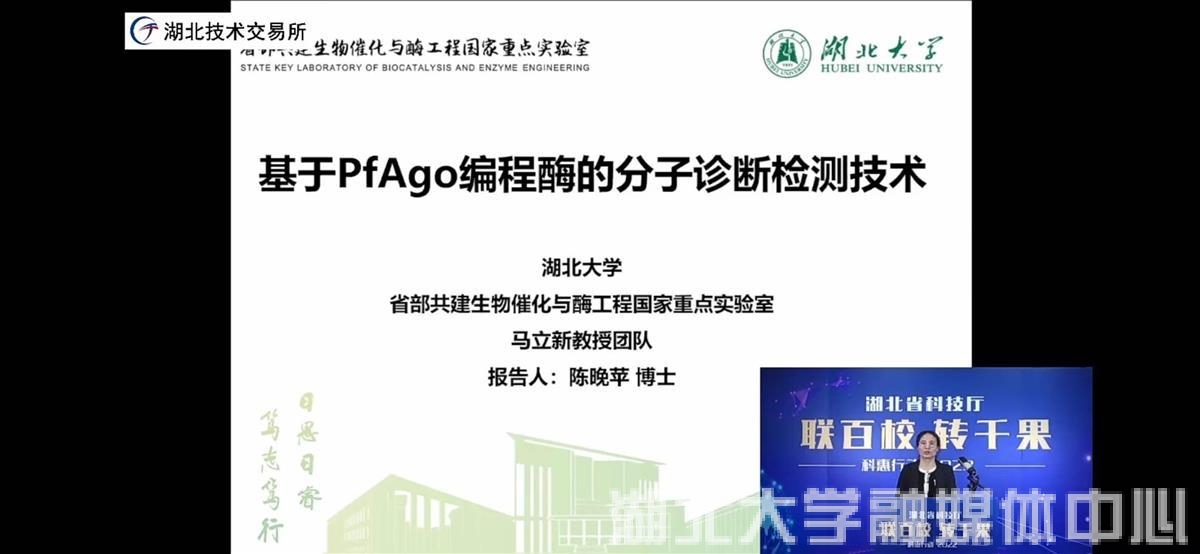 围绕必赢76net线路官网优势科研领域,湖北技术交易所与必赢76net线路官网于活动前深入对接,精选了5项科技成果在本次活动直播路演、对接,“基于PfAgo编程酶的分子诊断检测技术”、“高电压锂离子电池功能性电解液技术”、“复杂工业场景下的视觉认知与智能服务关键技术及应用”等精选科技成果在直播间亮相,相应成果的研发团队代表在直播间详细介绍了技术亮点、应用场景和合作方式。