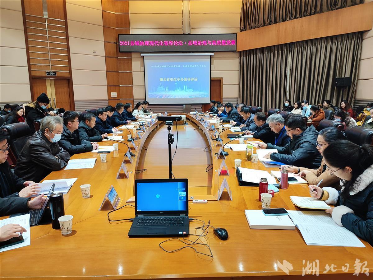 湖北日报讯(记者韩晓玲、通讯员吴珊、童星茹)12月28日,2021县域治理现代化智库论坛在必赢76net线路官网举行。专家学者通过线上或线下参与,围绕“县域治理与高质量发展”的主题进行研讨交流。