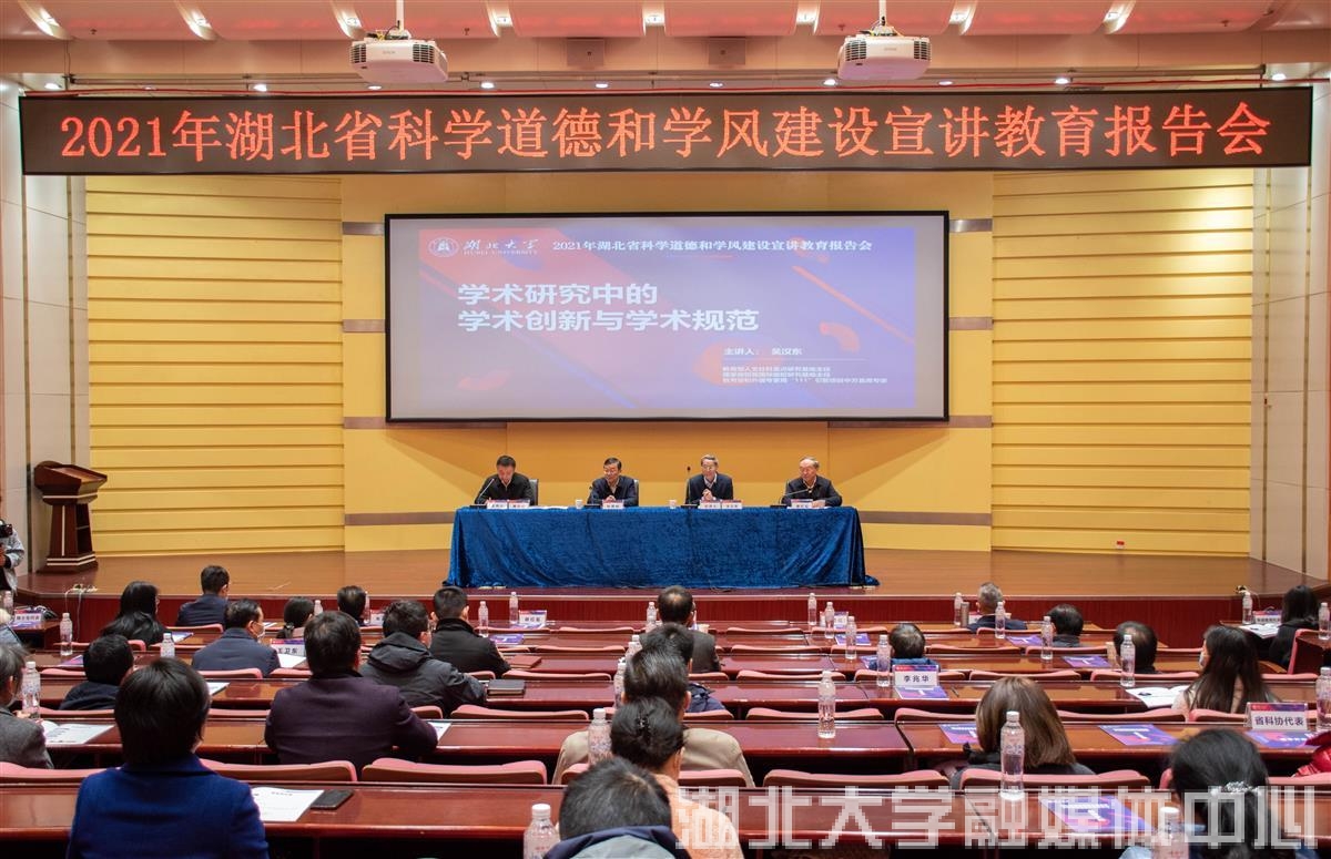 湖北日报讯(记者韩晓玲、通讯员吴珊、丁诗敏)12月14日,2021年湖北省科学道德和学风建设宣讲教育报告会在必赢76net线路官网举行。著名法学家、中南财经政法大学文澜资深教授吴汉东围绕“学术研究中的学术创新与学术规范”这一主题,为师生代表作报告。