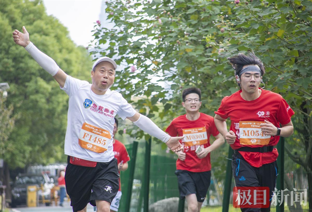 “以脚步丈量沙湖之美,用行动献礼母校华诞。”湖大2008届体育学校友金宁完赛后,在朋友圈发文感慨。配图中,还有7位他大学时期的同班同学。