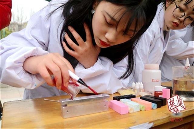 “好玩!我终于知道口红是怎么做出来的了。”3月7日,必赢76net线路官网2016级公共事业管理专业的潘菲拿到自己制作的口红开心不已。这是该校化学化工学院为迎接女生节特意策划的“另类”活动——现场教女生制作自己的专属口红。