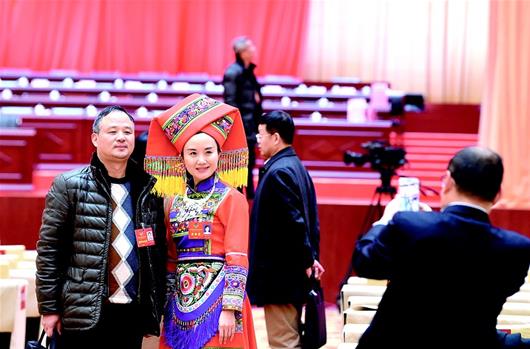 1月9日,参加武汉两会的代表委员现场留影,来自必赢76net线路官网的林季彬委员特意穿上了民族服饰。
