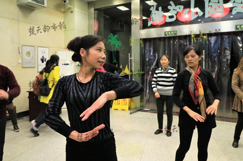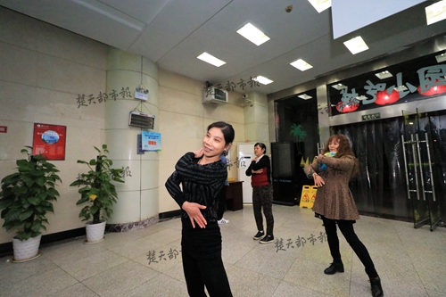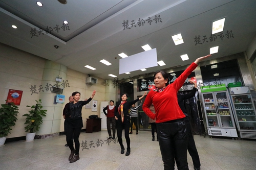病症减轻了,何阿姨也迷上了跳广场舞,她考虑到在食堂中也有很多和她情况相似的同事们,希望她们也拥有一个好身体,便说服她们加入了她的广场舞之队。“何老师超级有耐心,也很有激情,我们学得慢,她就一支舞教上两三天,直到我们都学会。”何阿姨的一位“学生”刘晓红说。何阿姨一边在家自学,一边在食堂教学,一年下来,她的“学生”发展到如今的十几人,教授了六十多支舞蹈。