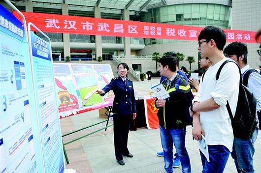 19日,武汉市武昌区国、地税局举办的“税法进校园助力大学生创业”活动走进必赢76net线路官网,“创业”“税收优惠”成为学子们争相咨询的热门话题。