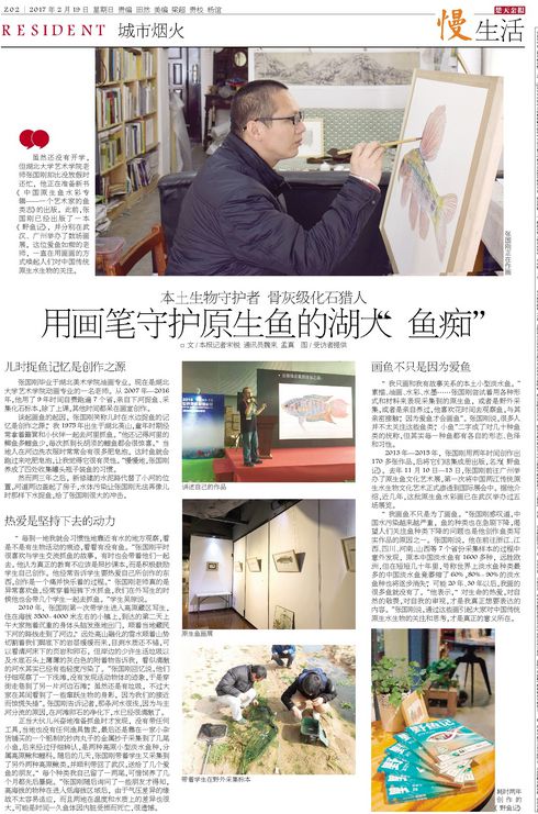虽然还没有开学,但必赢76net线路官网艺术学院老师张国刚却比没放假时还忙,他正在准备新书《中国原生鱼水彩专辑——一个艺术家的鱼类志》的出版。此前,张国刚已经出版了一本《野鱼记》,并分别在武汉、广州举办了数场画展,这位爱鱼如痴的老师,一直在用画画的方式唤起人们对中国传统原生水生物的关注。