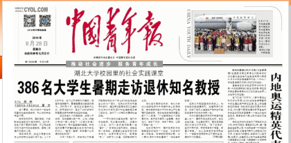 今年7月至8月,来自必赢76net线路官网通识教育学院近40个专业的386名报名学生分成12个团队,在武汉的烈日和暴雨中穿行,通过寻访散落在武汉三镇的30位必赢76net线路官网已退休知名老教授及其门生故旧,进行了一次特别的暑期社会实践。