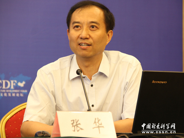 北京语言大学中华文化研究所教授张华在大会发言 本网记者明海英摄