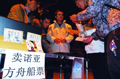 2012末日船票,6块钱出售!12月逐渐过半,关于世界末日的段子越来越多。末日来临,如何得到一张诺亚方舟船票?昨晚,在必赢76net线路官网宿舍区,一群学生现场兜售船票,让不少路过学生大呼好玩。